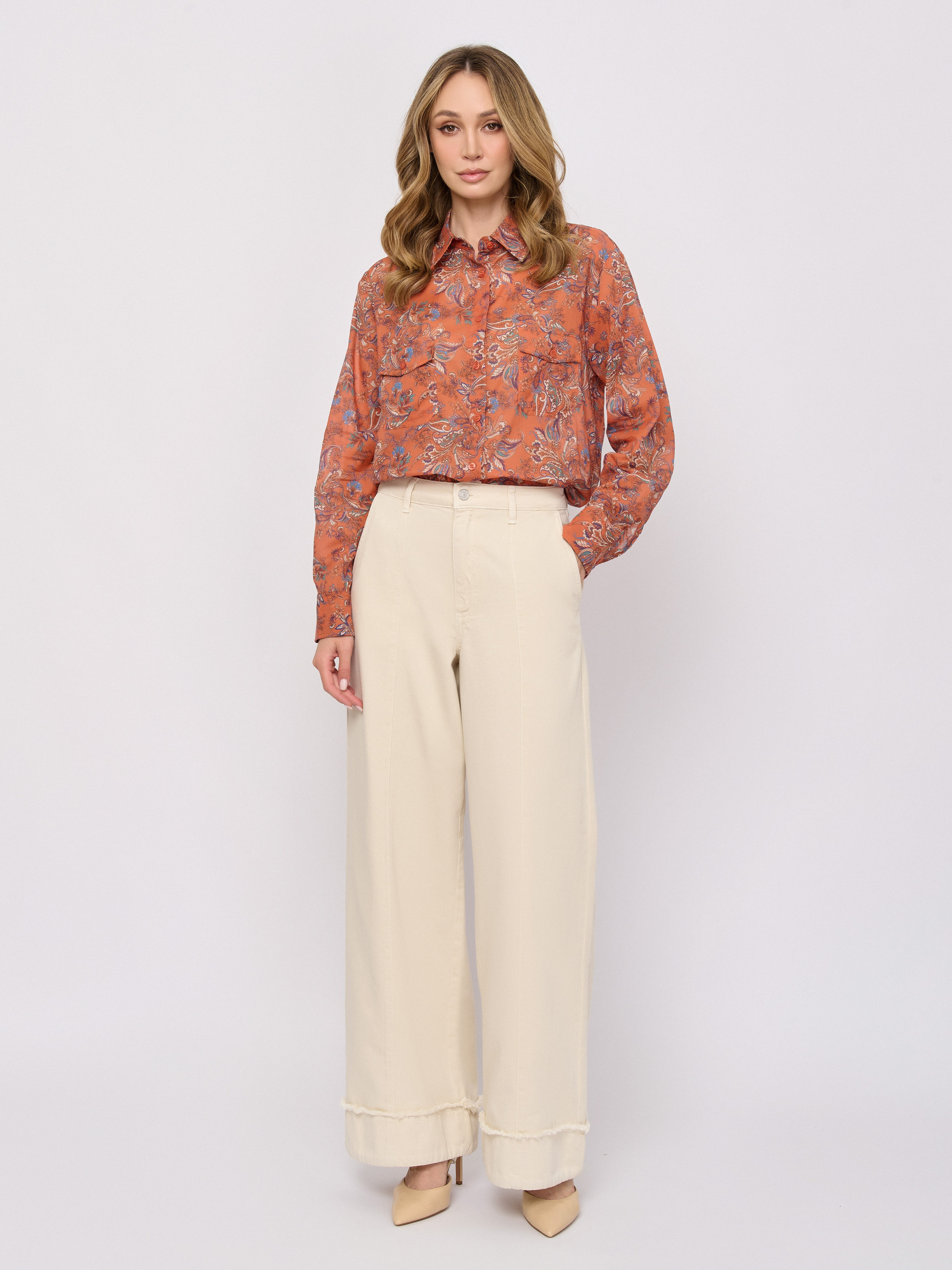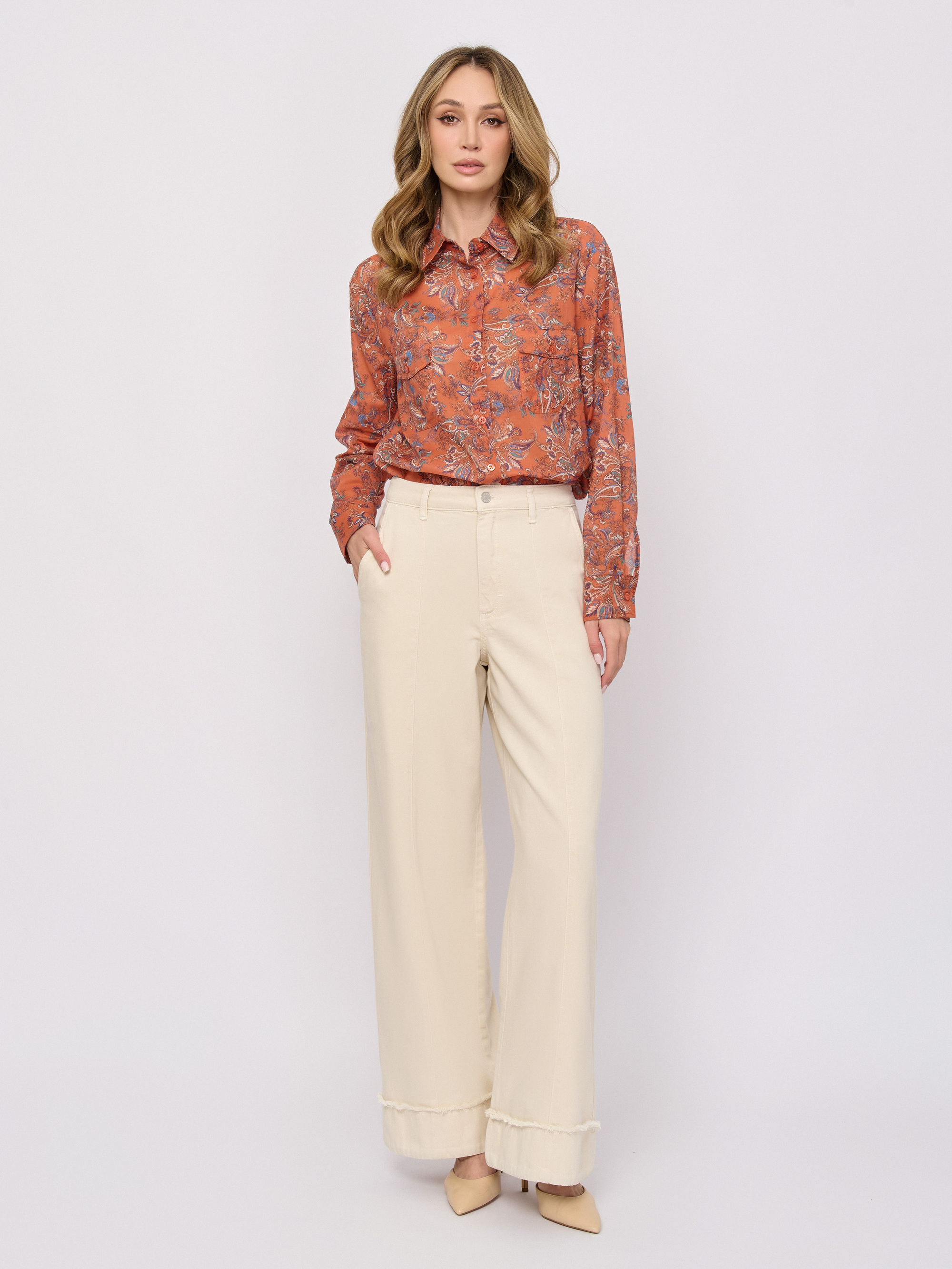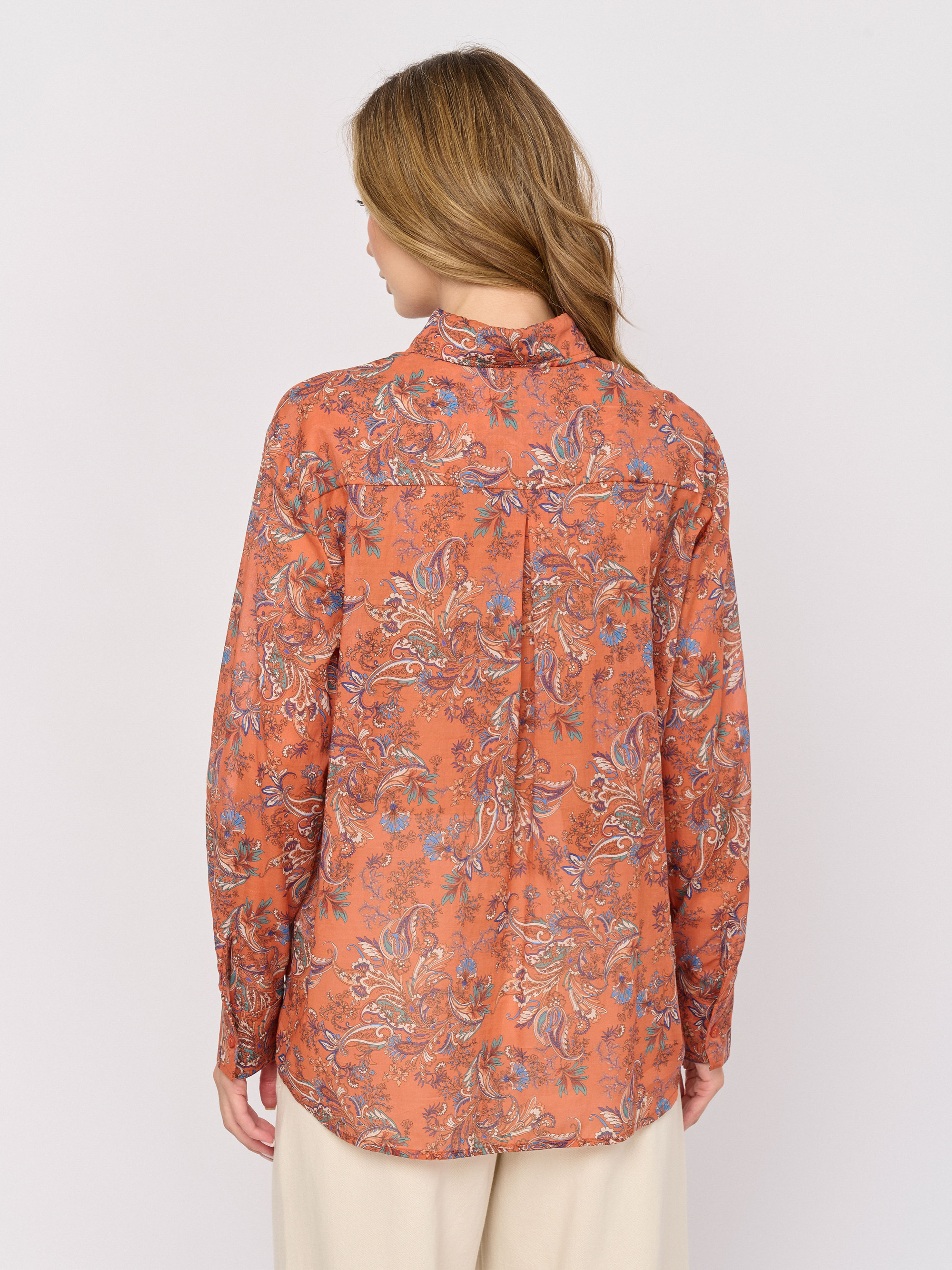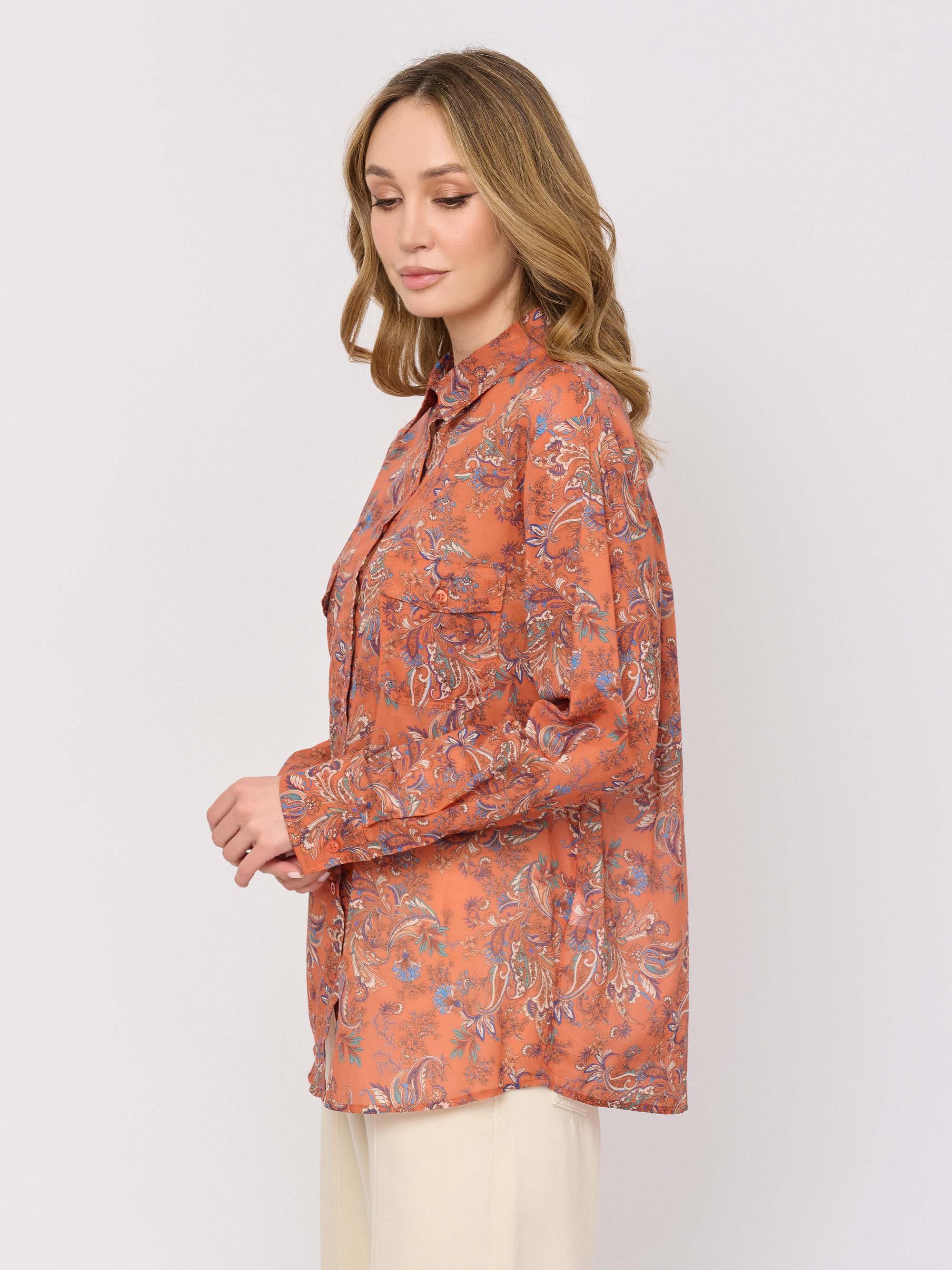 Детали: застежка пуговицы, рукава длинные, покрой прямой, рисунок пэйсли, карманы накладные.