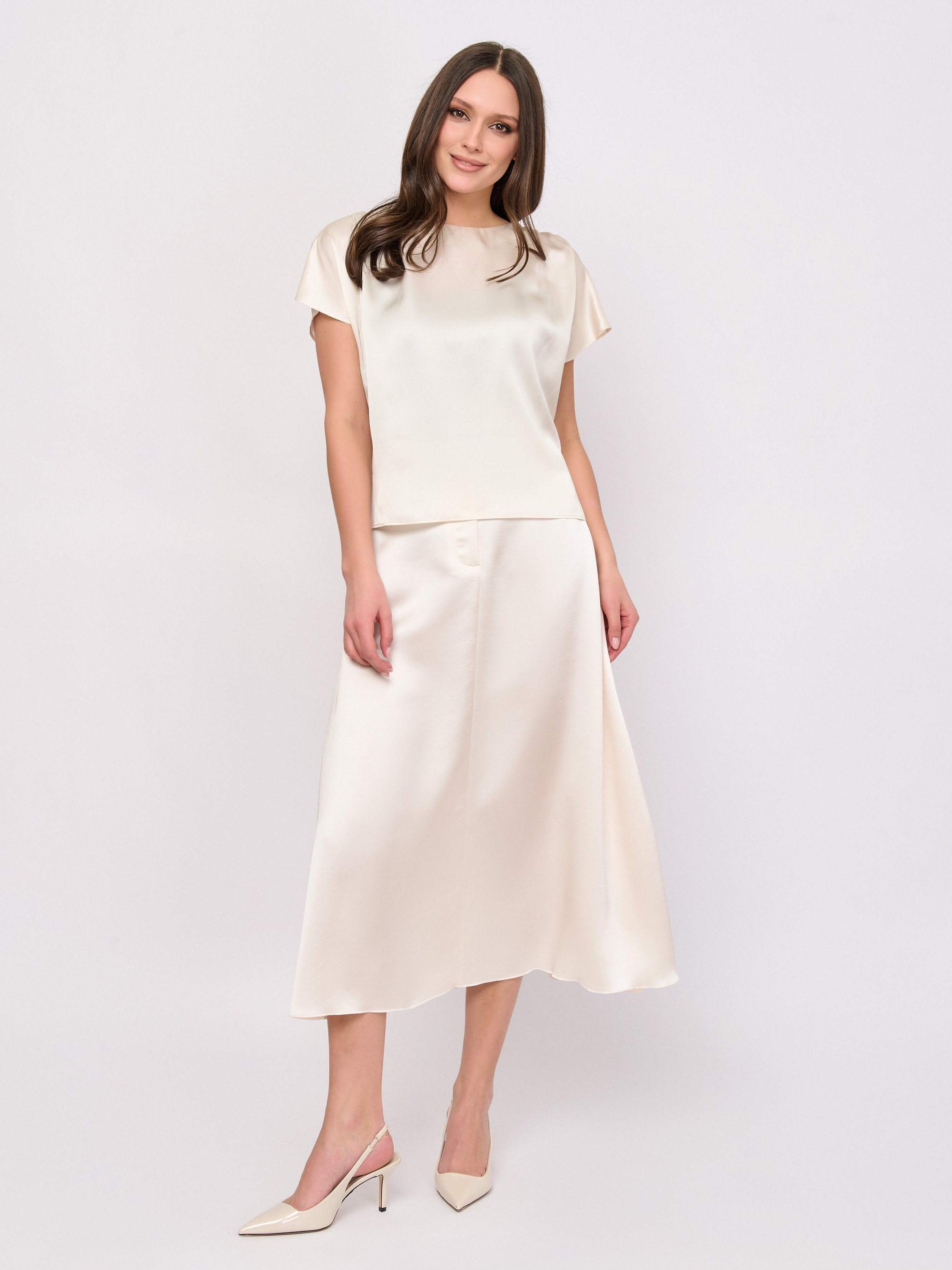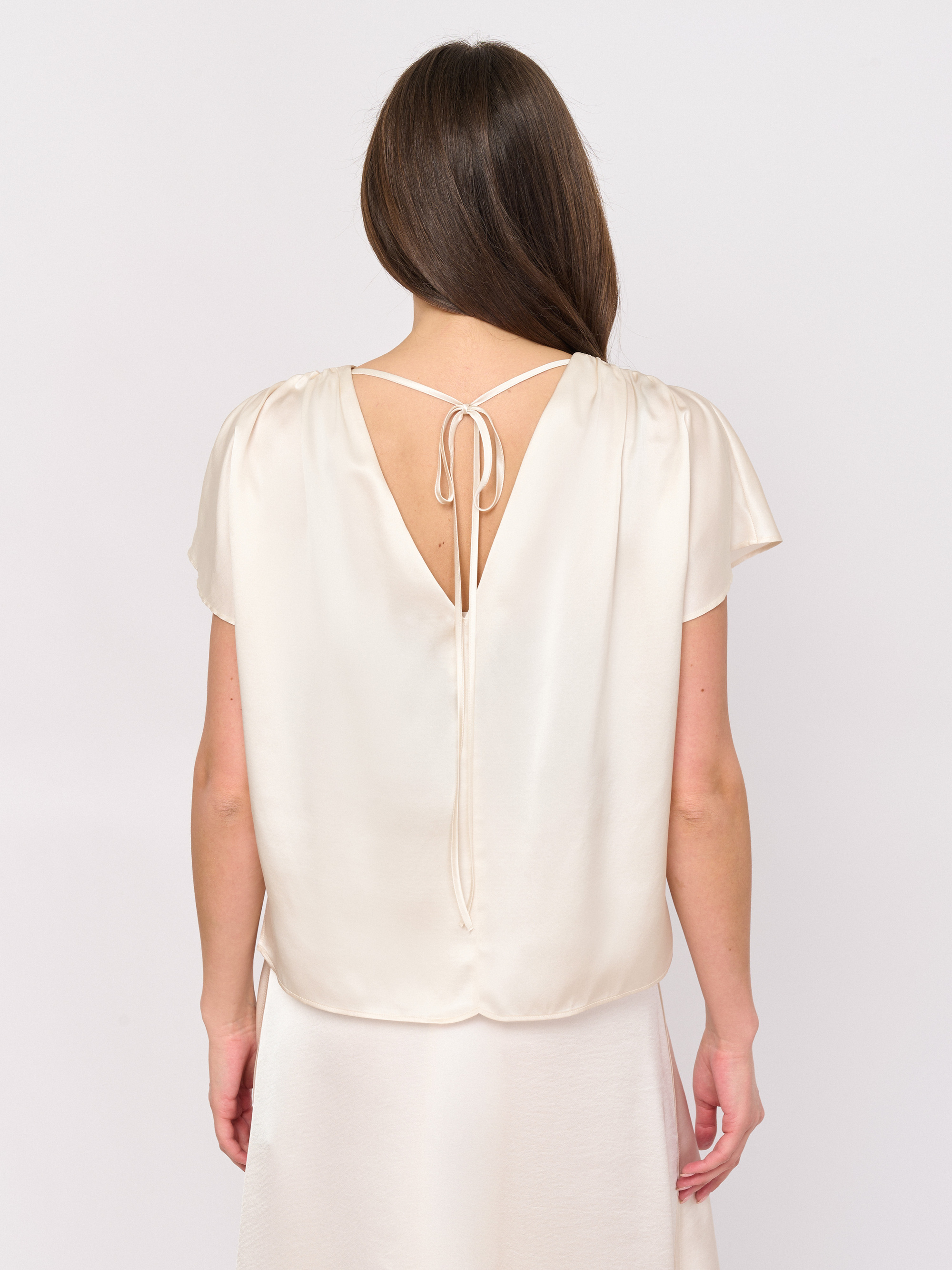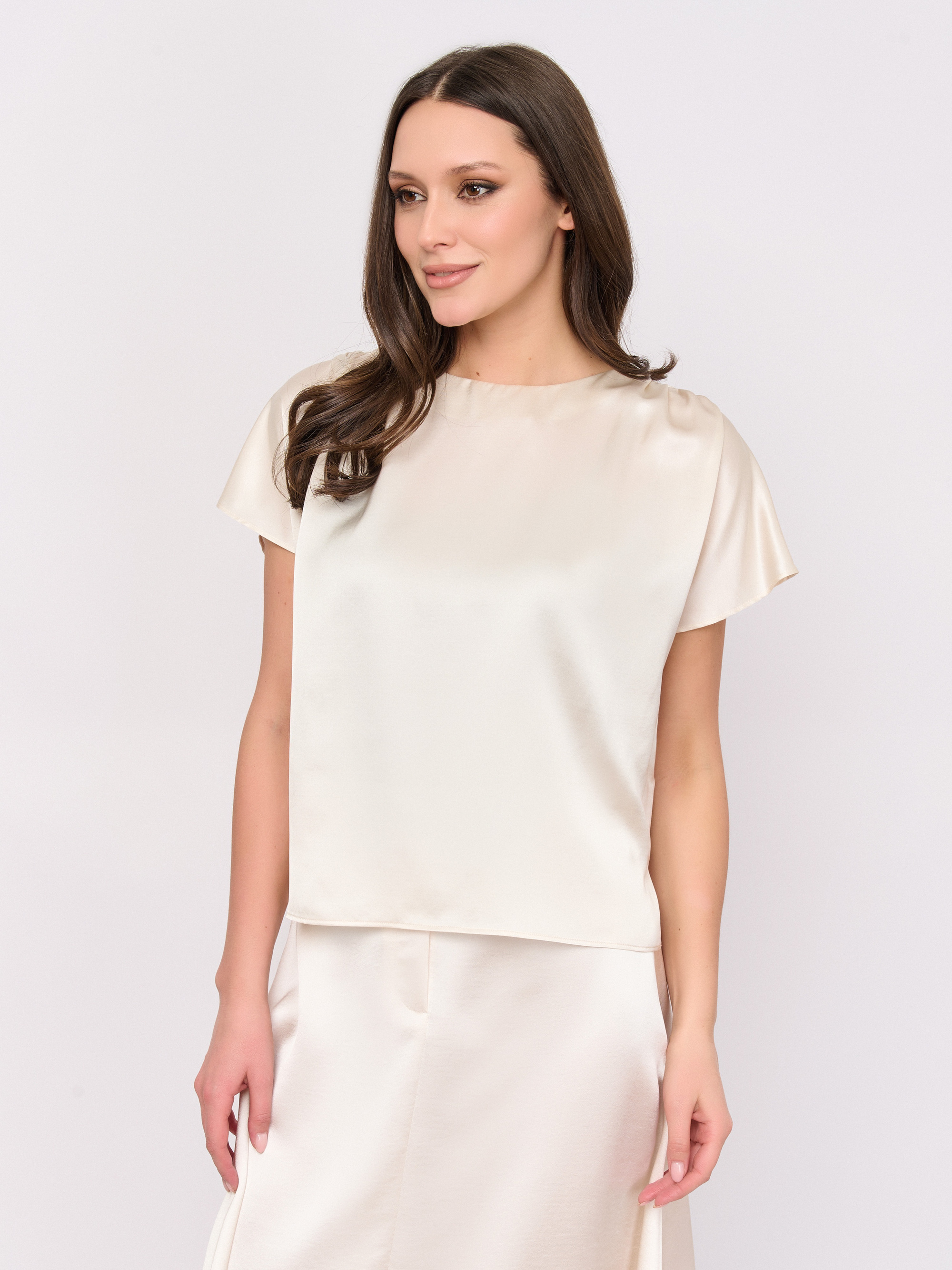 Детали: без застежки, вырез горловины декольте, рукава короткий, покрой прямой, рисунок однотонный.