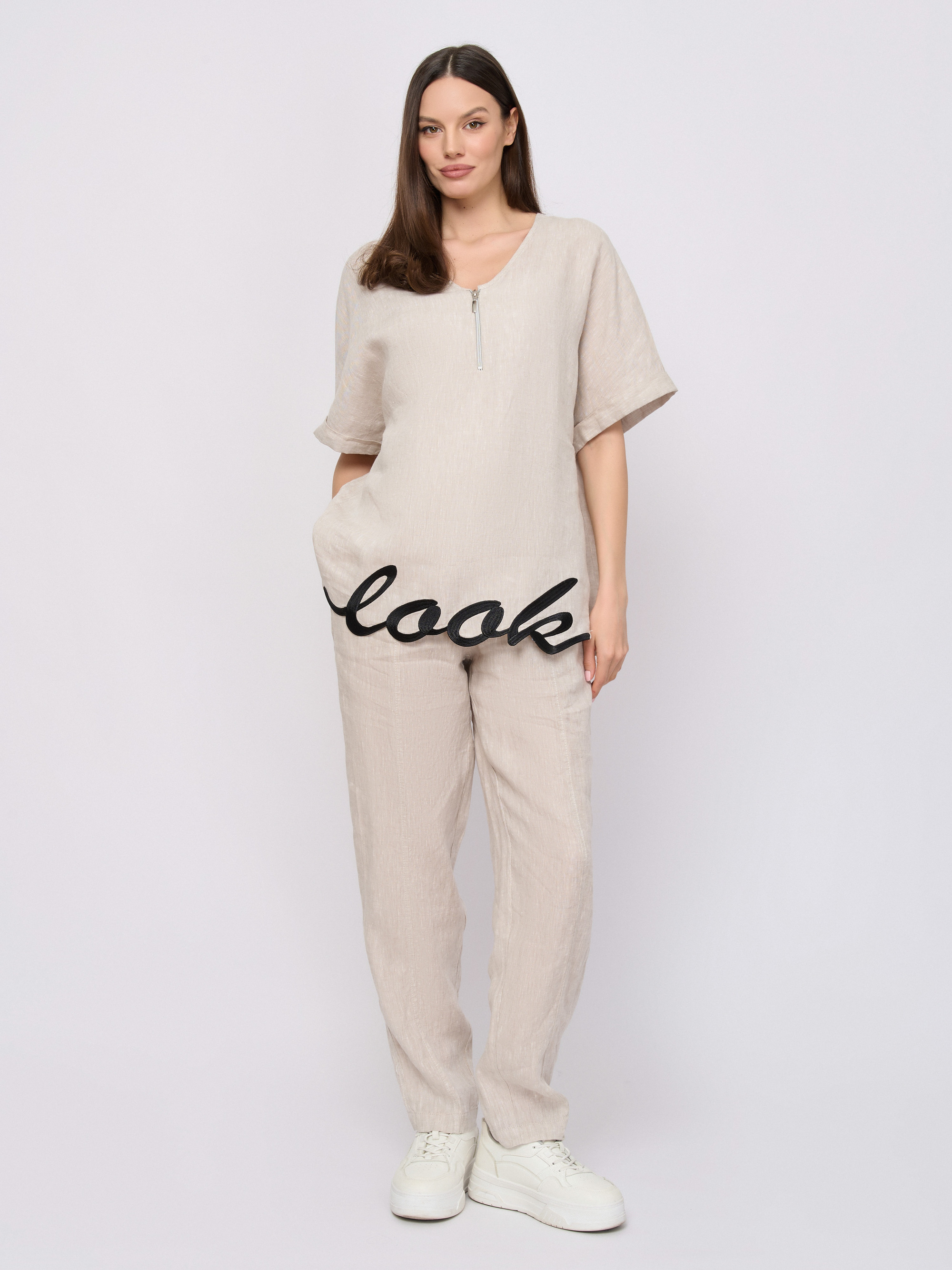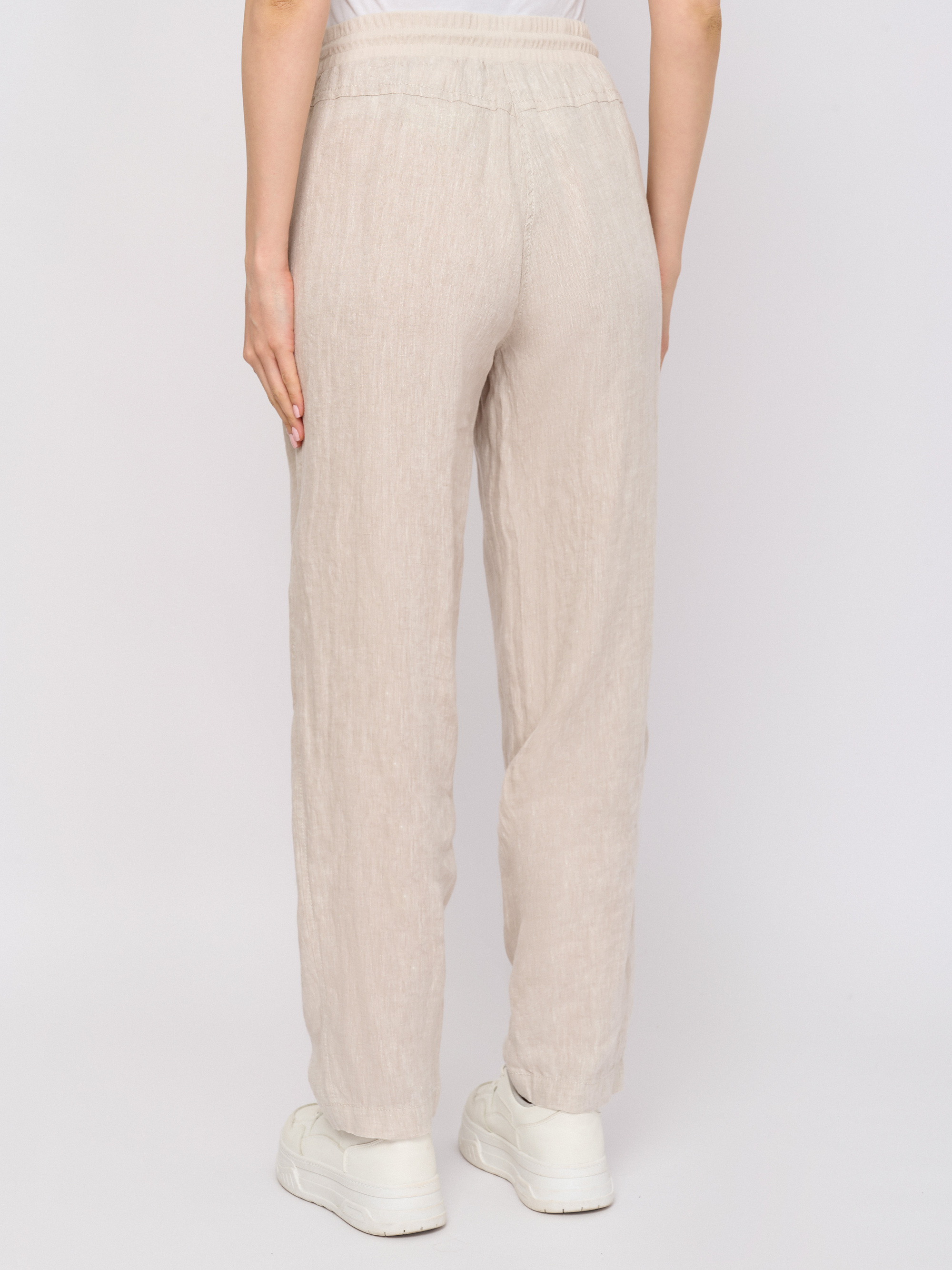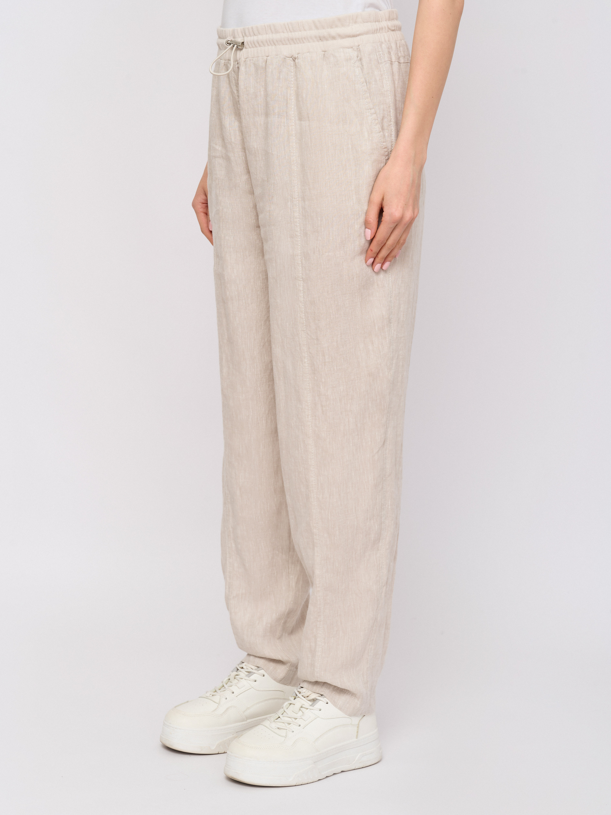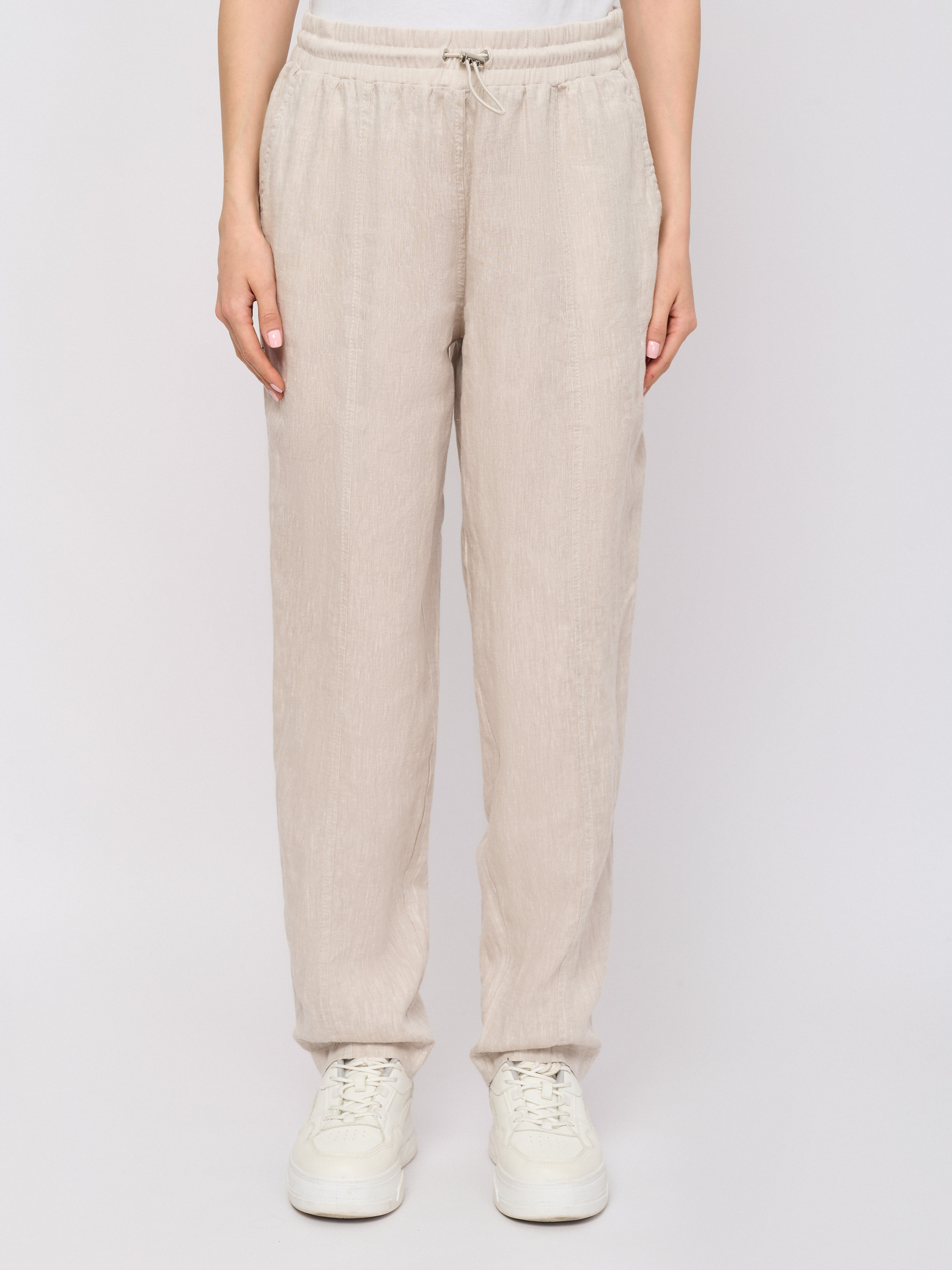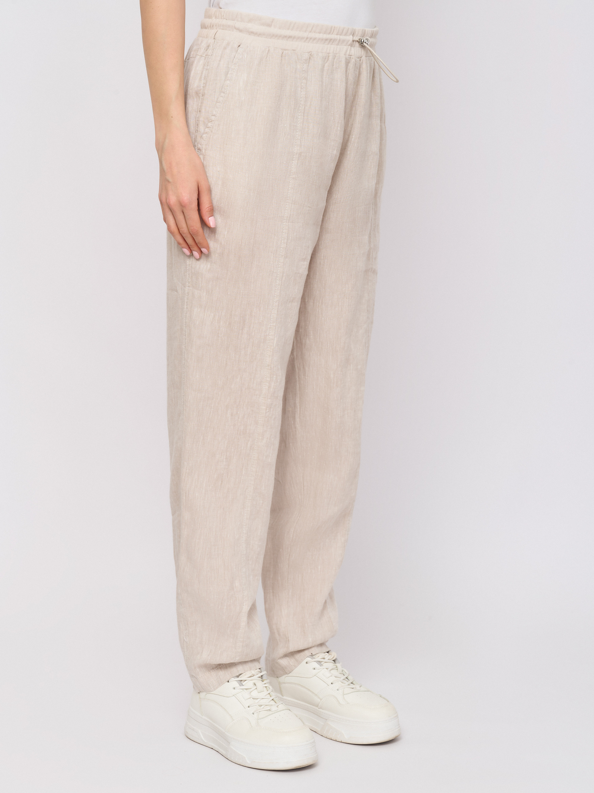 Детали: застежка завязки, рисунок однотонный, карманы косые, крой брючин зауженный, посадка высокая.