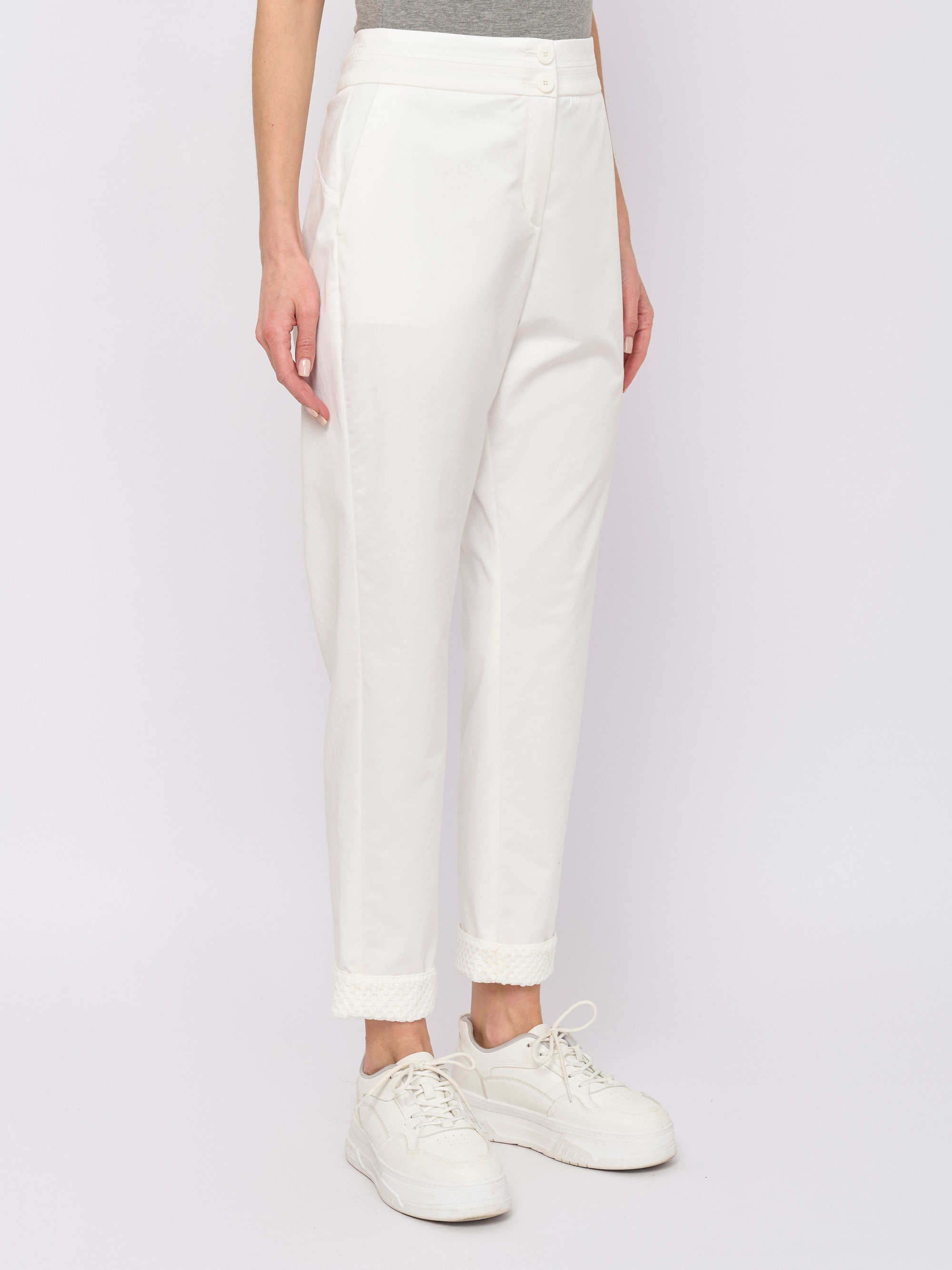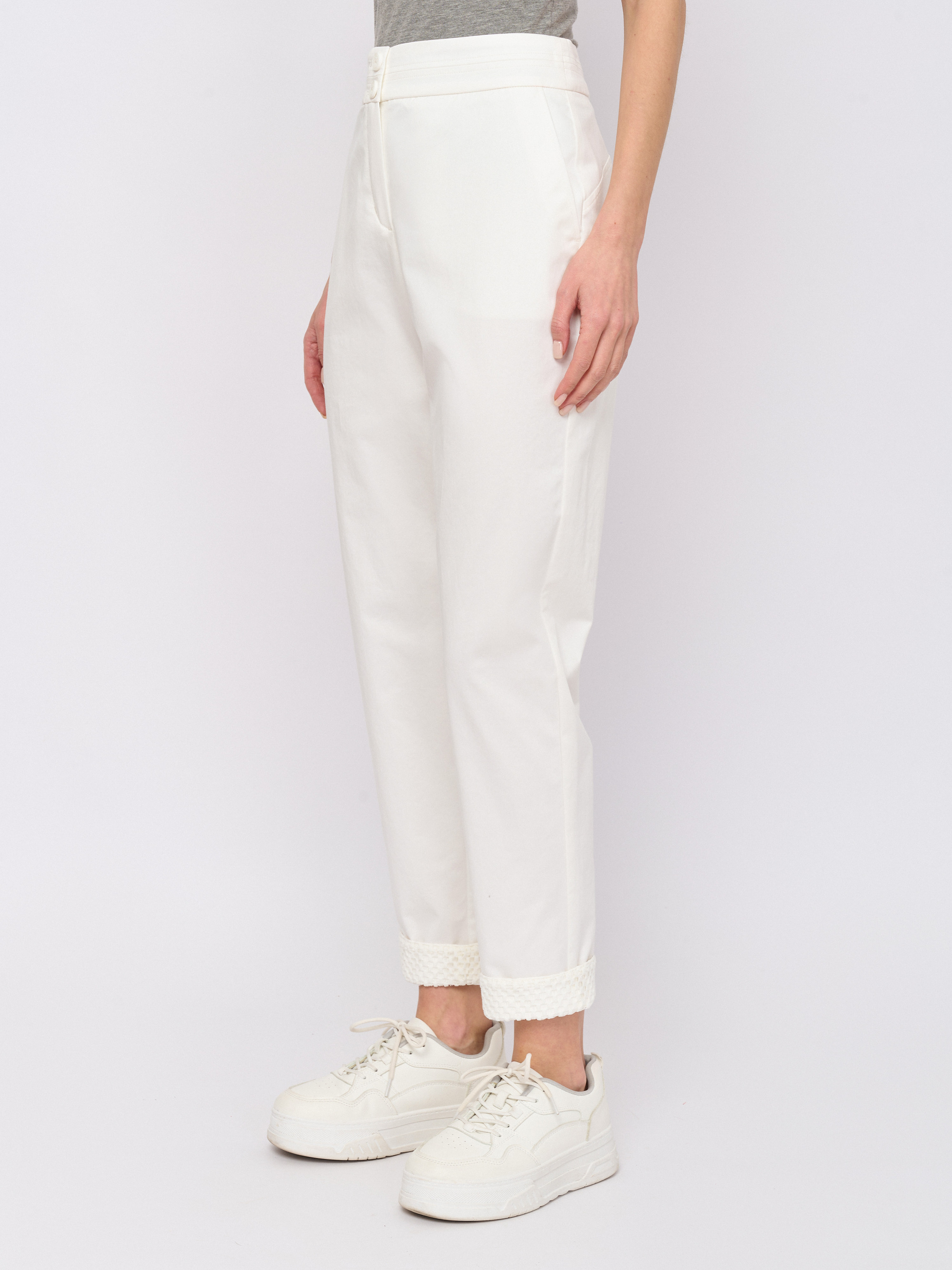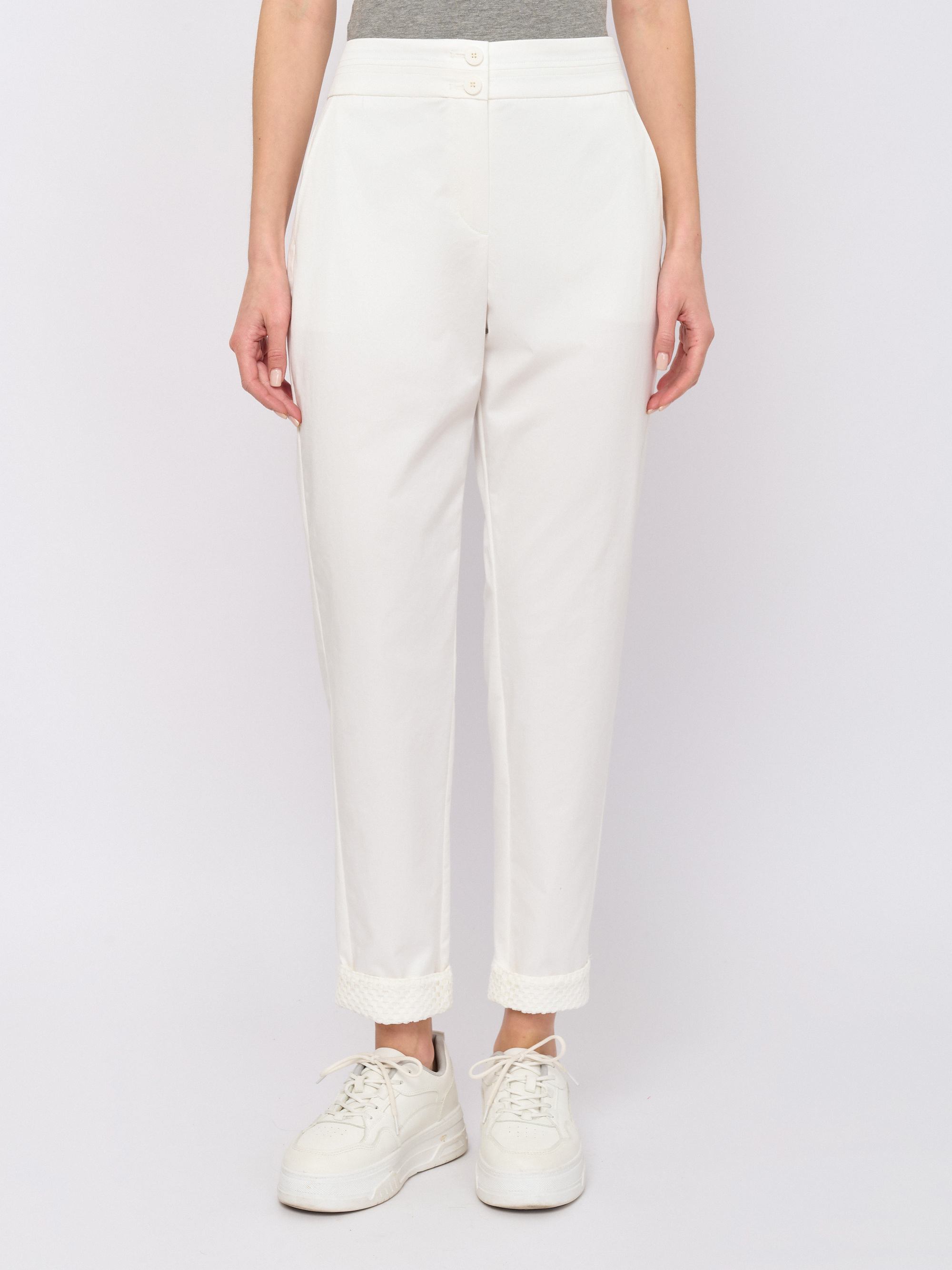 Детали: застежка молния, рисунок однотонный, карманы косые, крой брючин зауженный, посадка низкая.