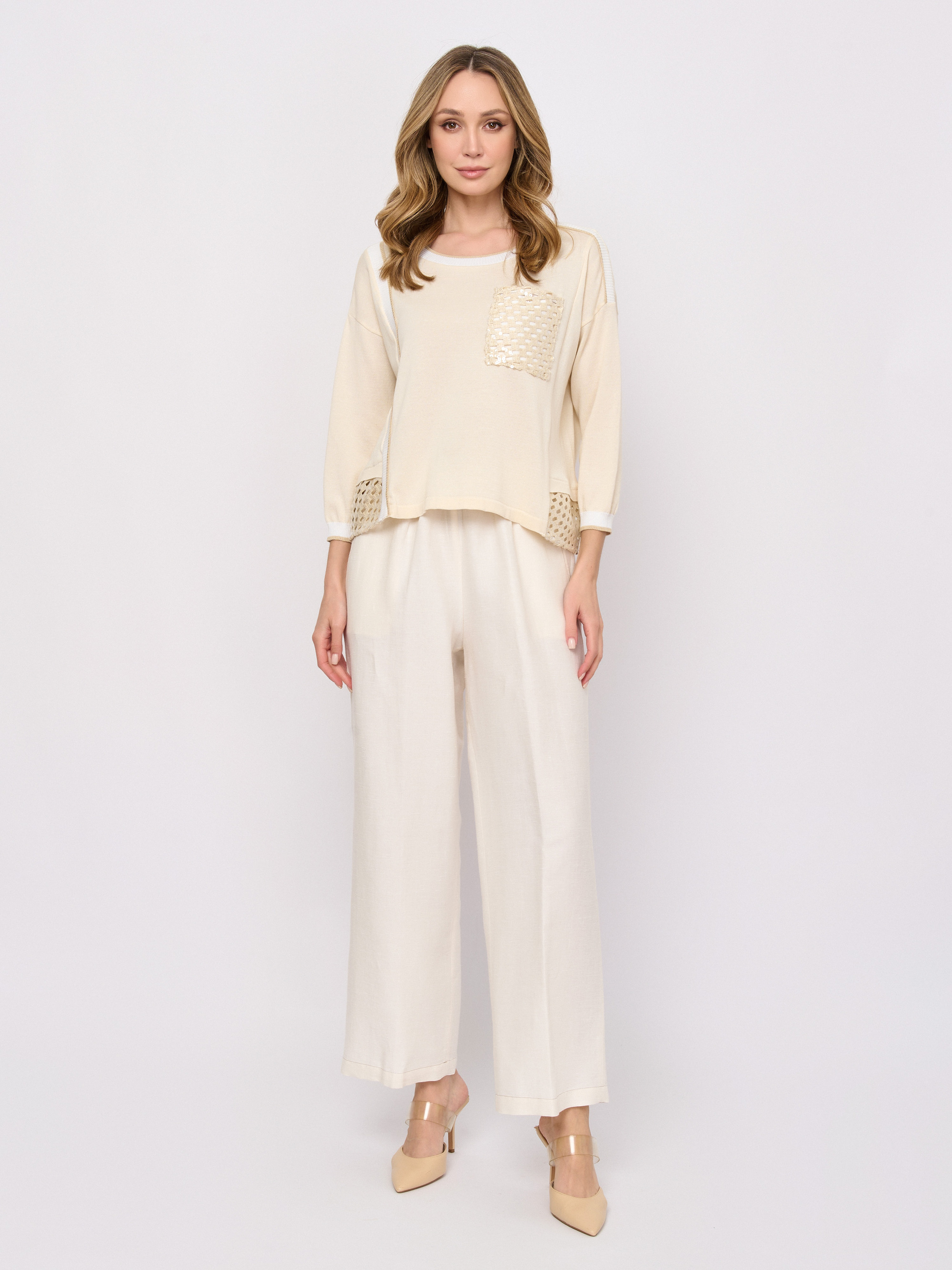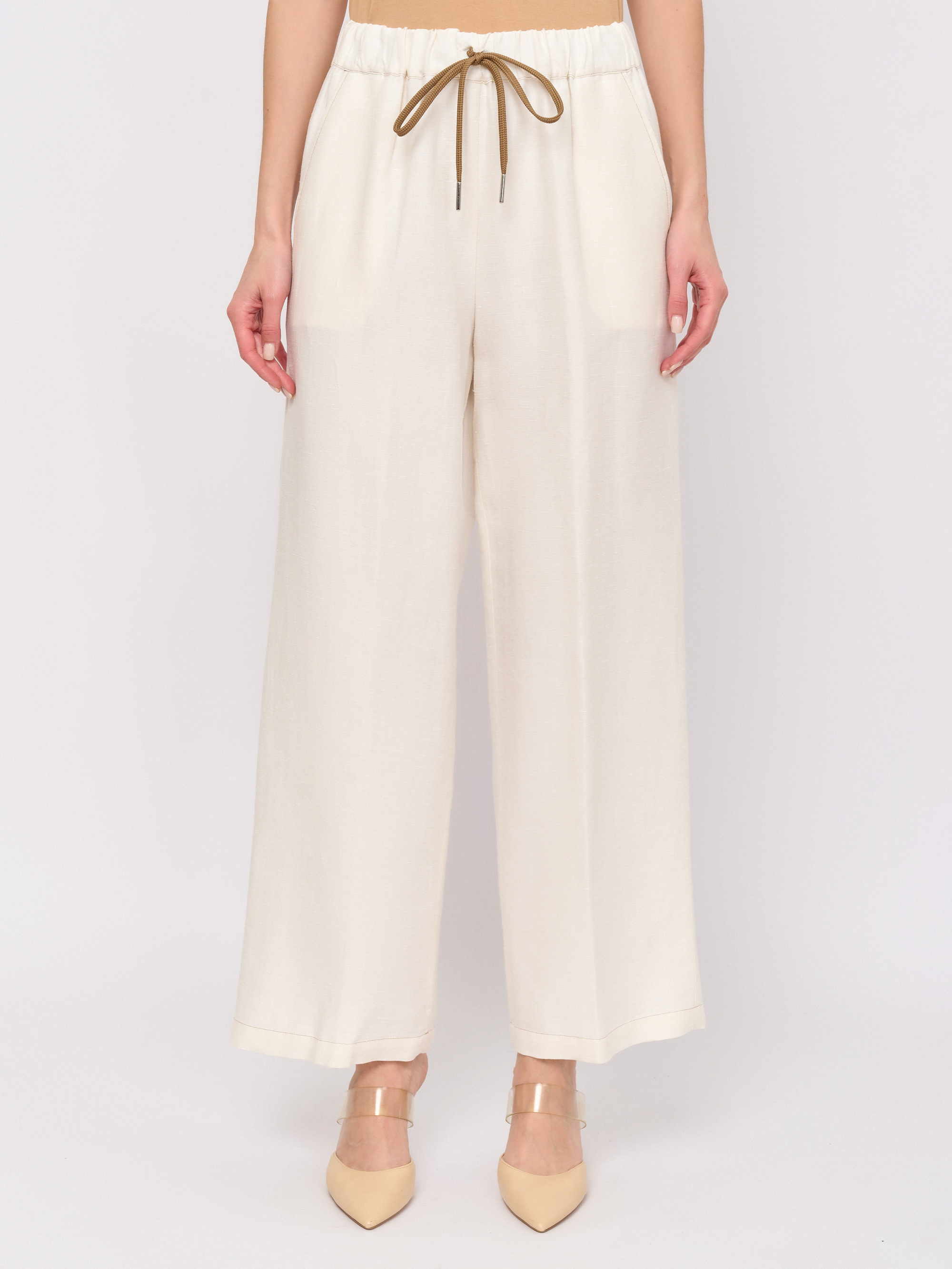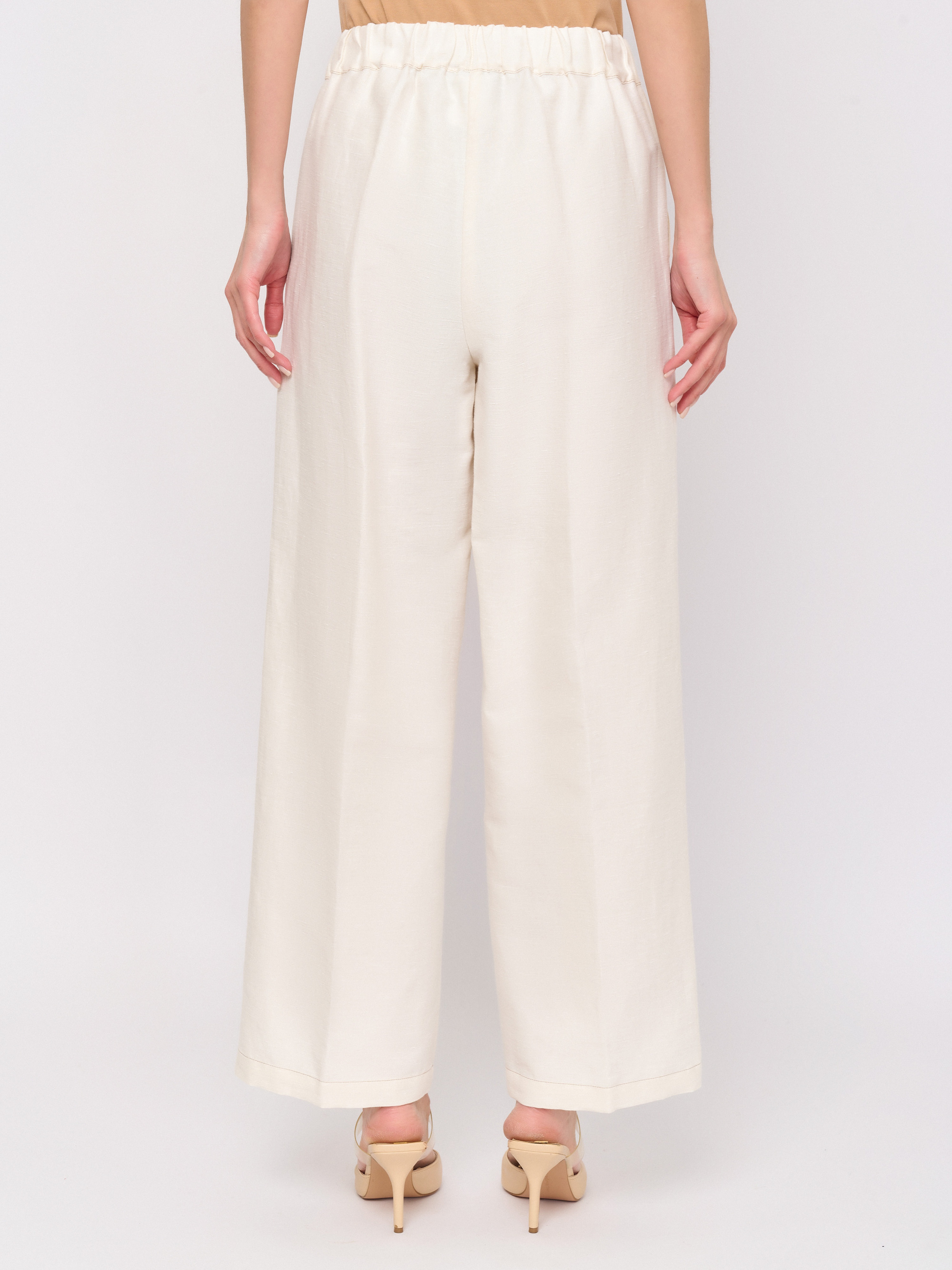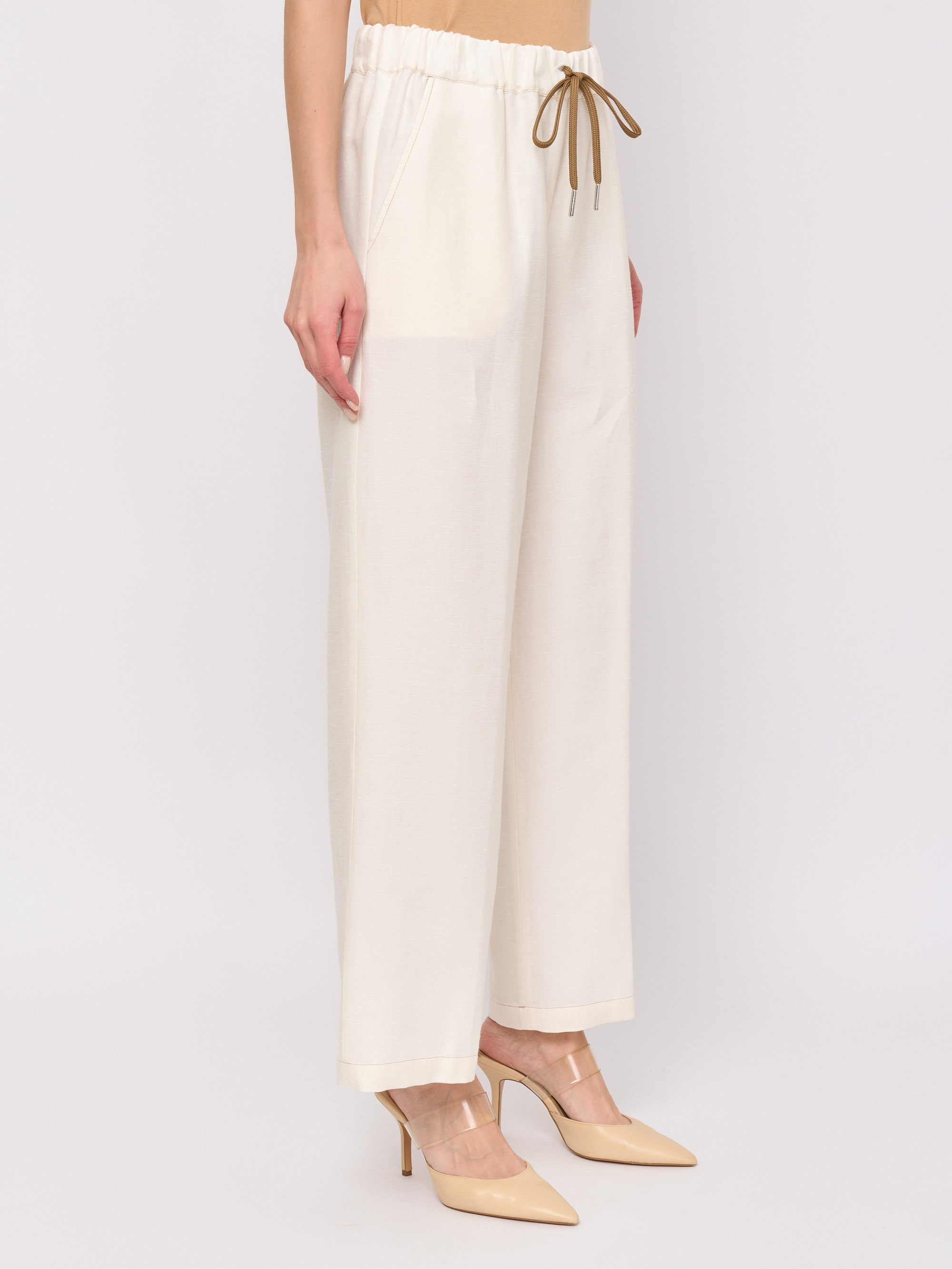 Детали: застежка резинка, рисунок однотонный, карманы косые, крой брючин прямой, посадка высокая.