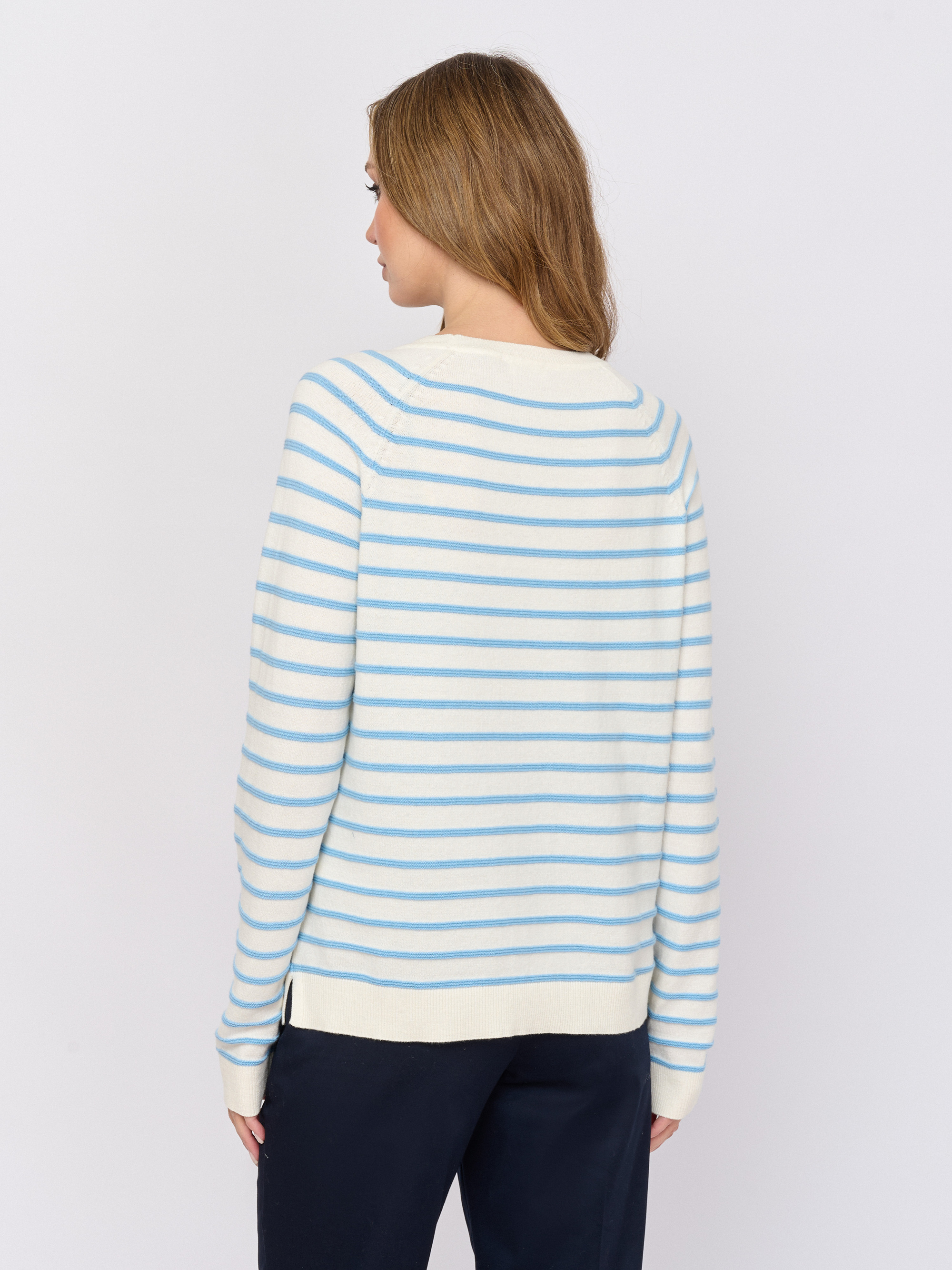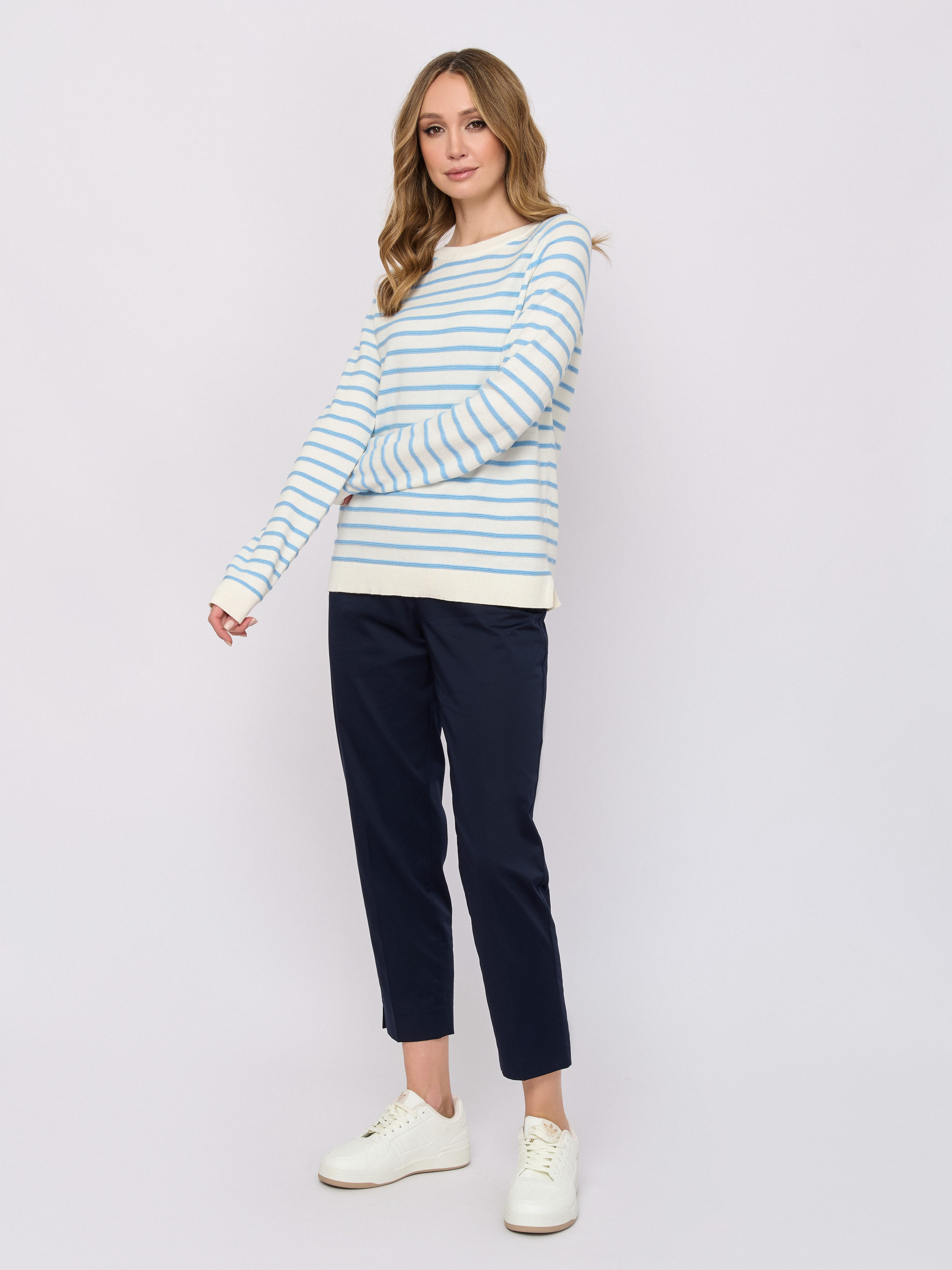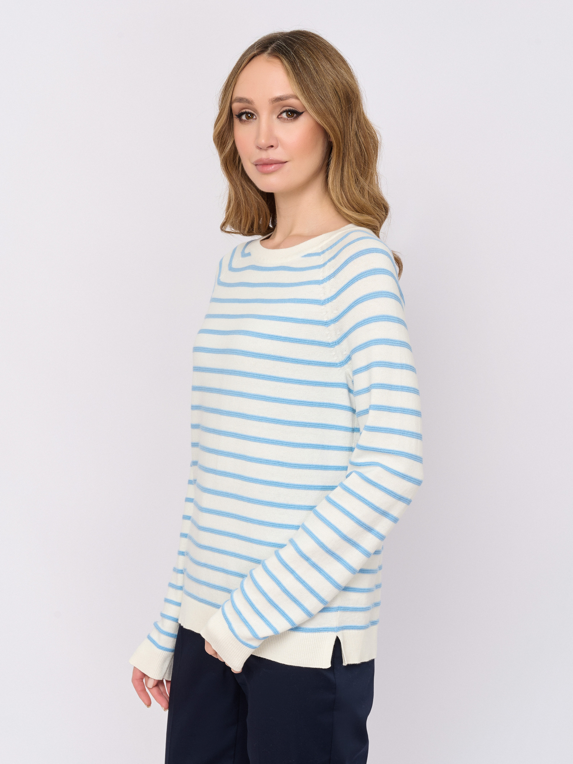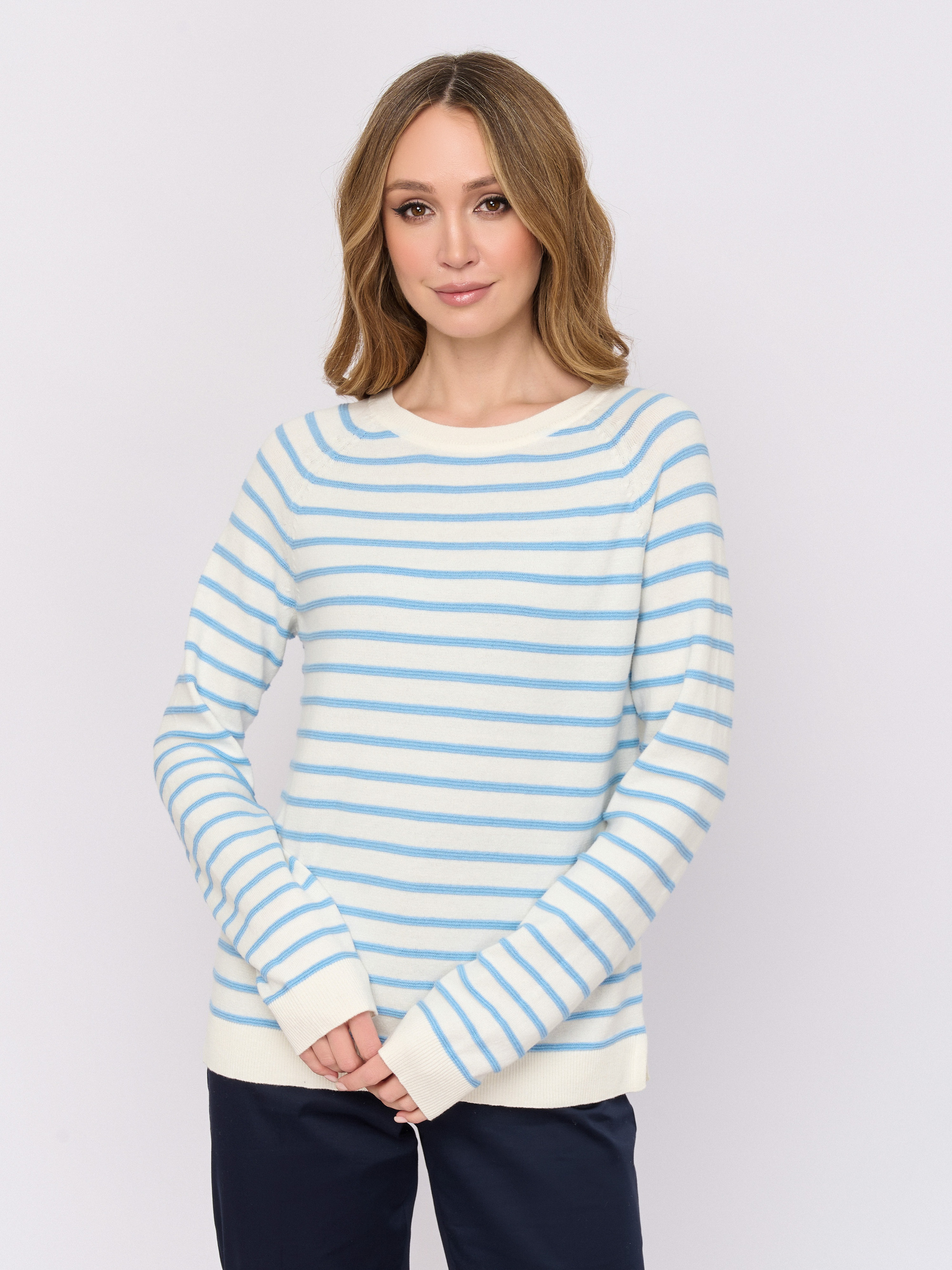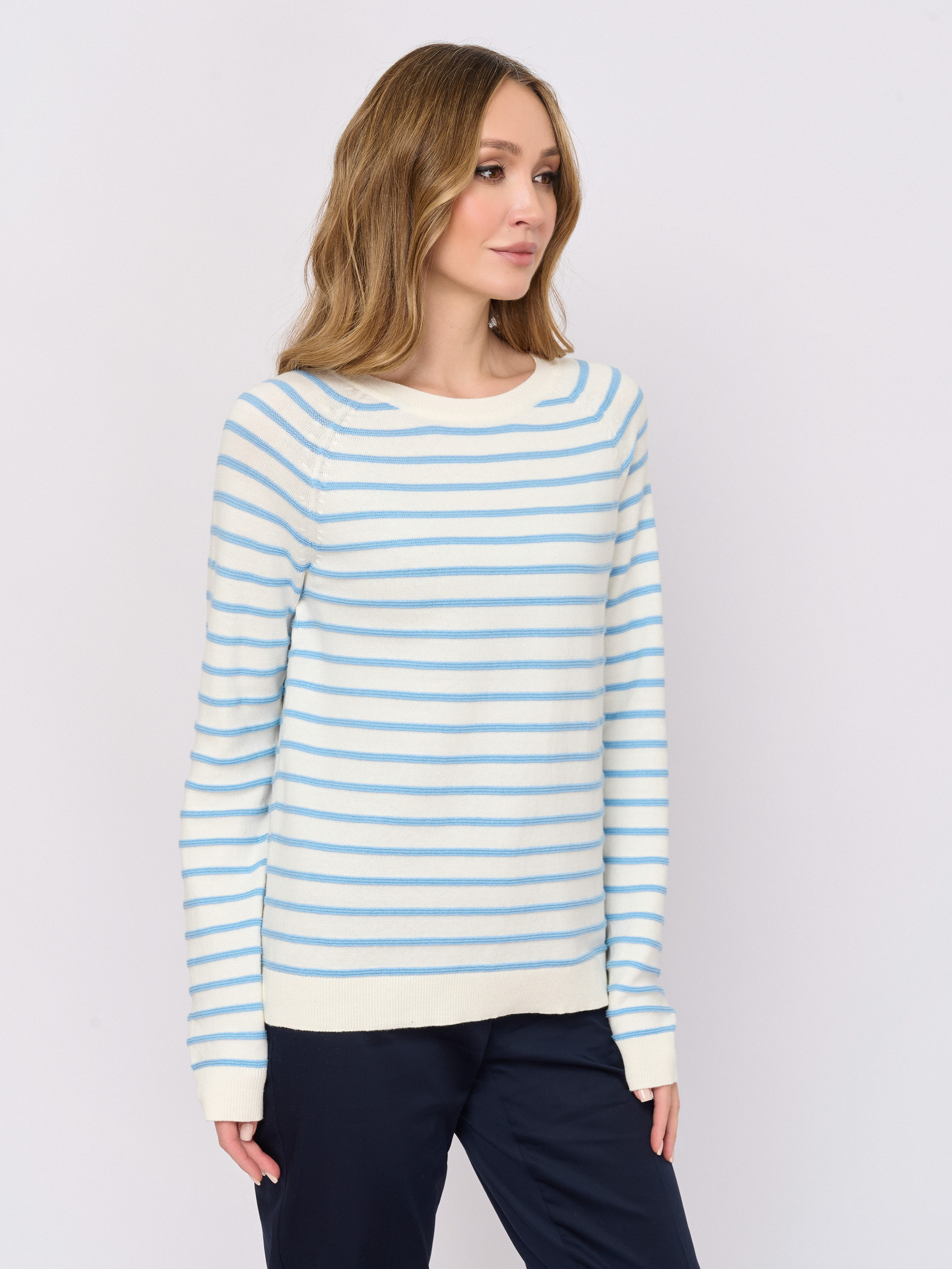 Детали: вырез горловины округлый, рукава длинные, покрой прямой, рисунок полоска.