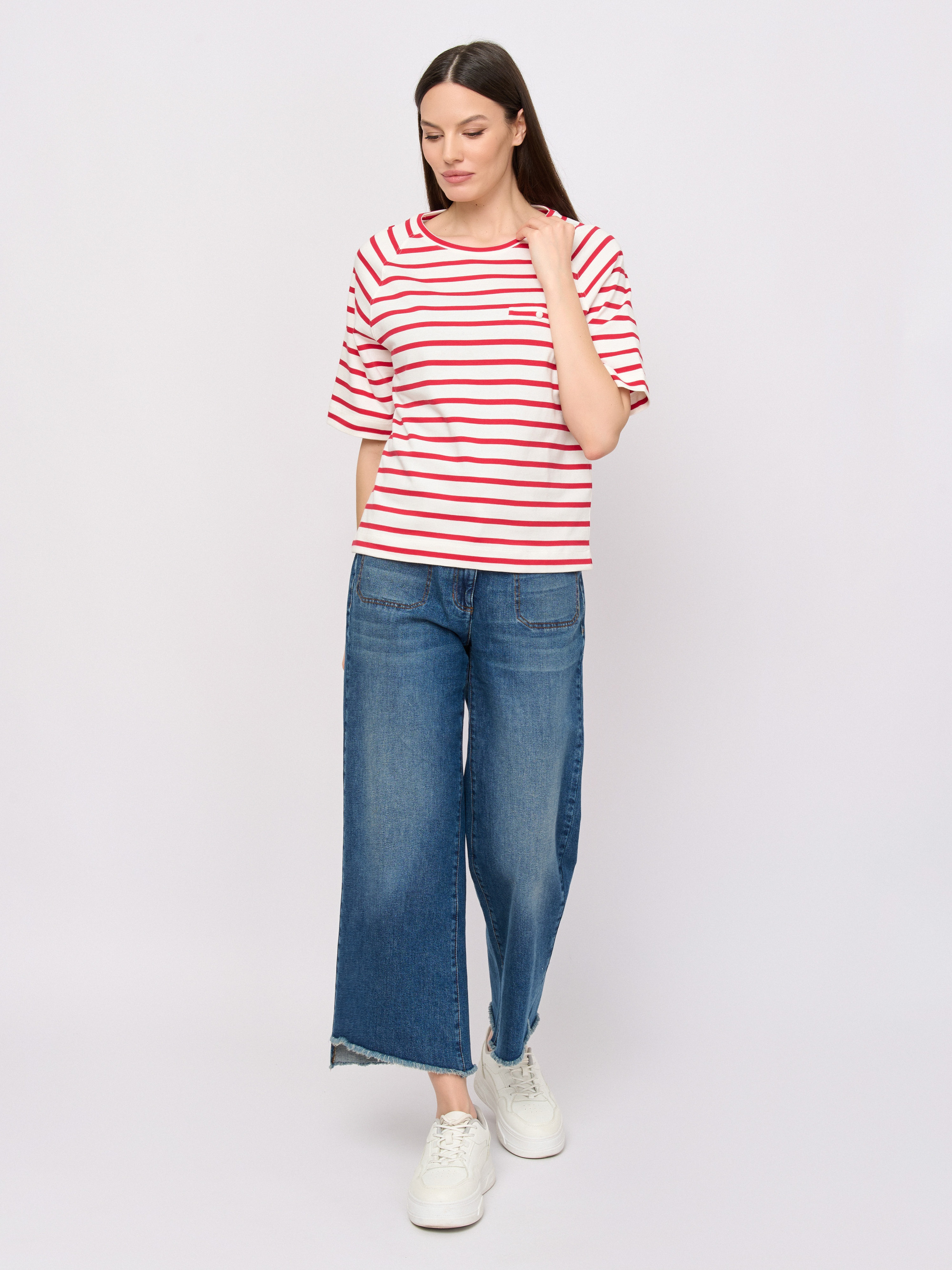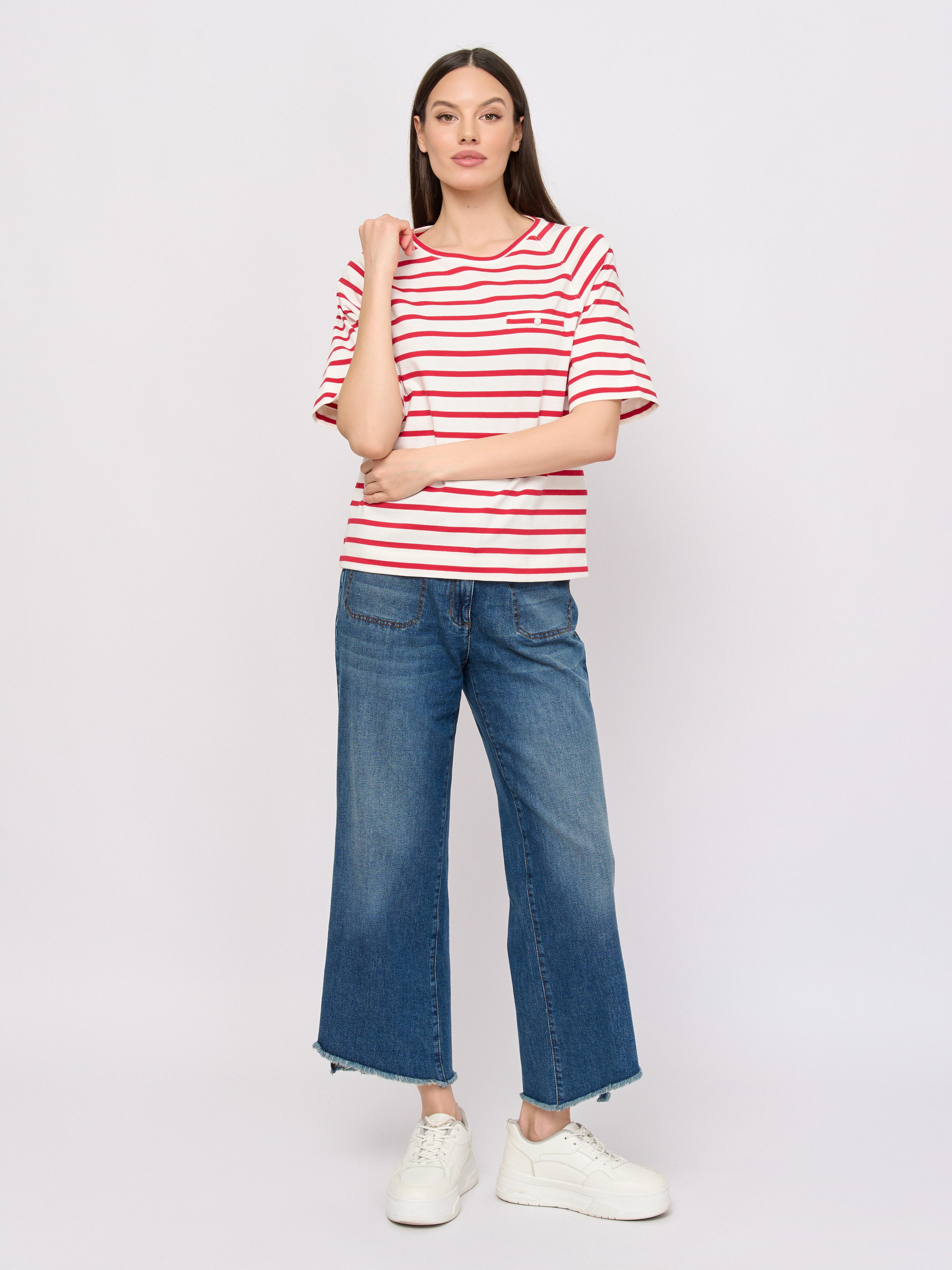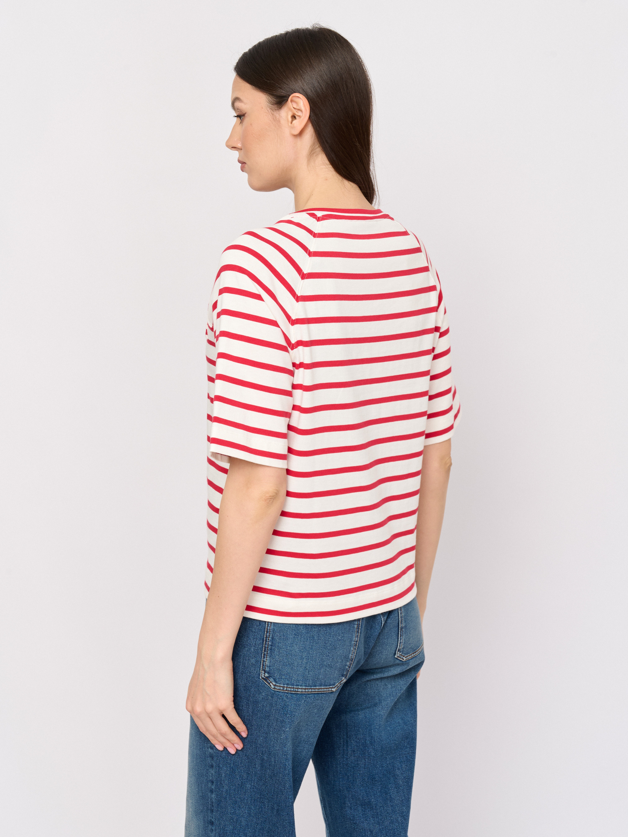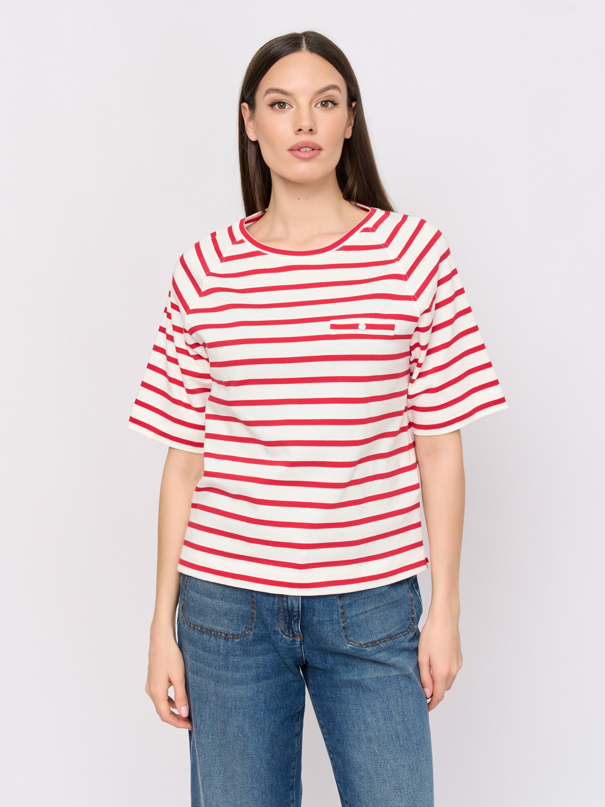 Детали: вырез горловины округлый, покрой прямой, рисунок полоска, без надписи.