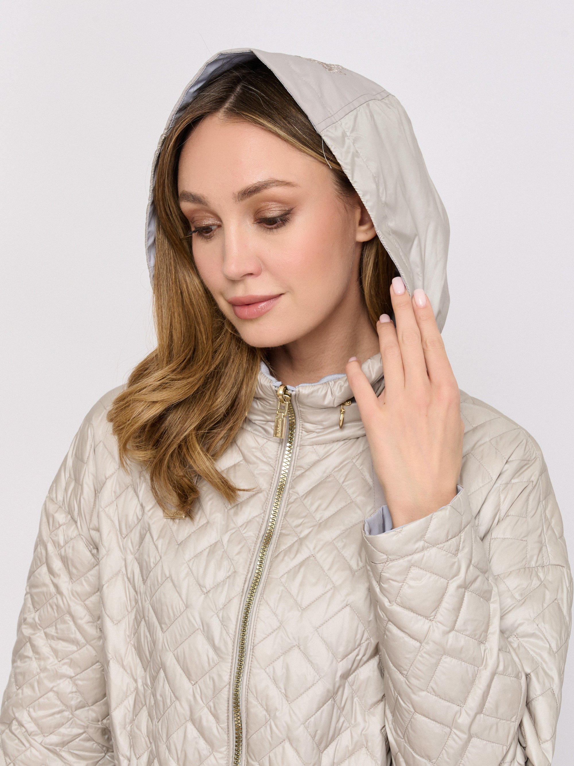 Детали: опции капюшона капюшон прячется в воротник, рукава длинные, покрой свободный, рисунок однотонный, застежка молния, утеплитель пух, карманы накладные, без опушки, без пуговиц.