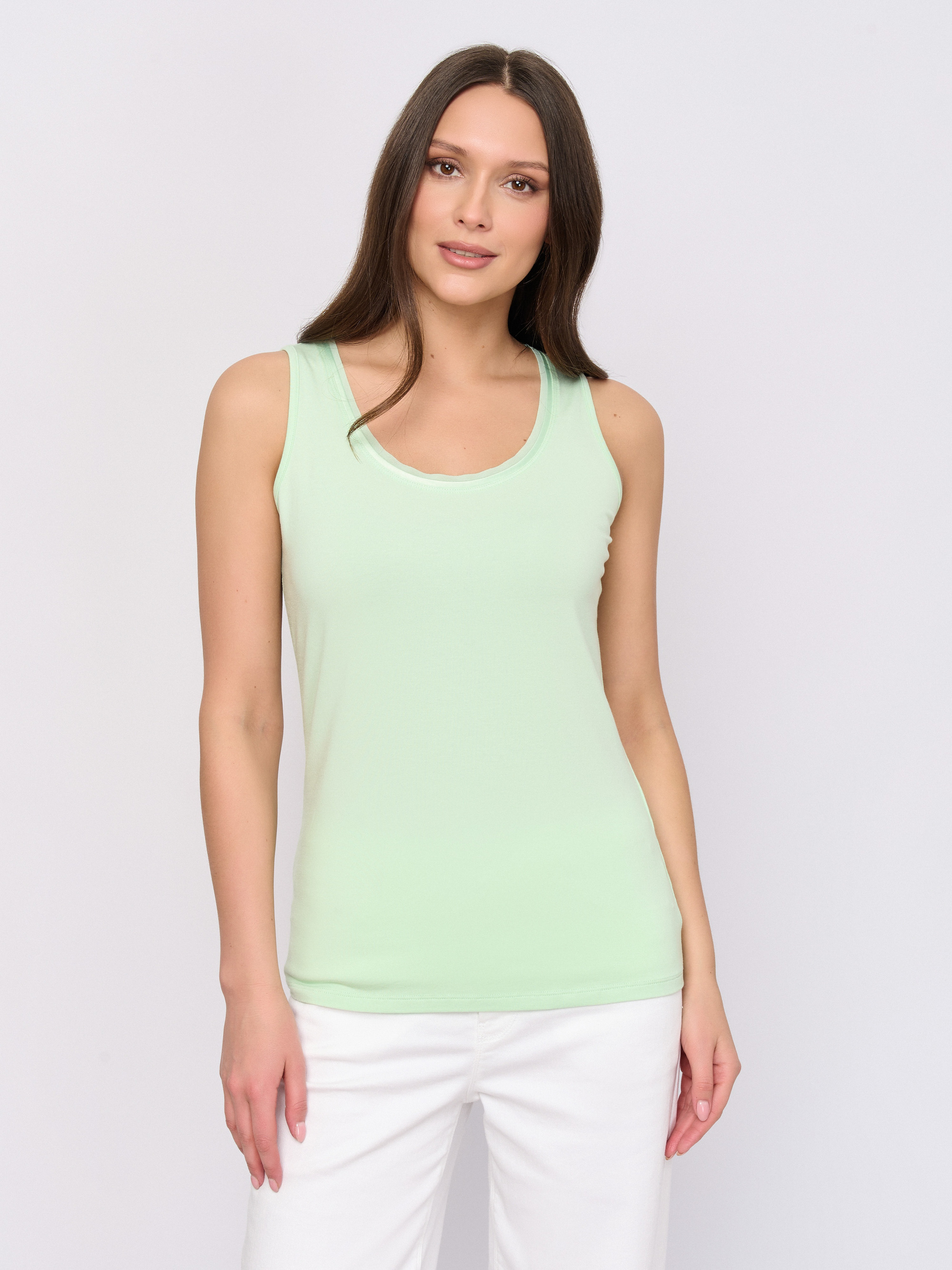 Детали: рисунок однотонный, без элементов, без надписи, вид бретелек бретель на плечо, вырез горловины u-образный вырез, покрой прямой.